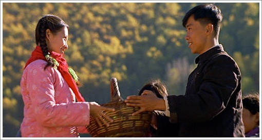 The Road Home and Not One Less share some superficial similarities. A 30-ish present-day businessman returns to his native village for the funeral of his father. As the film shifts from black-and-white to color, he dreamily recalls how his schoolteacher father–an “intellectual” by Chinese standards–met his illiterate mother when he came to teach in the new village school. There is plenty of potential drama here. But this isn’t a movie: it’s a treacly pink- and red-tinted extended music video that might illustrate a compilation of mournful flute tunes.We see many scenes of the mother as a fresh-faced girl–pretty, pig-tailed Zhang Ziyi–running in slow motion in the countryside, spying on the school and preparing dishes for the eligible bachelor. Eventually, the two exchange a few words on culinary matters.